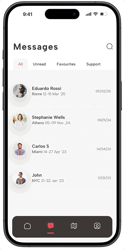 Based on these findings, I created an illustrative user journey that shaped my vision for the app’s functionality. The journey shows how a user like Alex would navigate CICERO, skipping extensive planning and diving straight into enjoying his family holiday.
