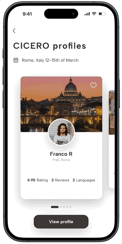 CICERO is a user-friendly lifestyle and travel app that connects users with local guides for personalised recommendations. It leverages real-time human insights for effortless discovery, providing local expertise and unique perspectives for an authentic, seamless experience—anytime, anywhere