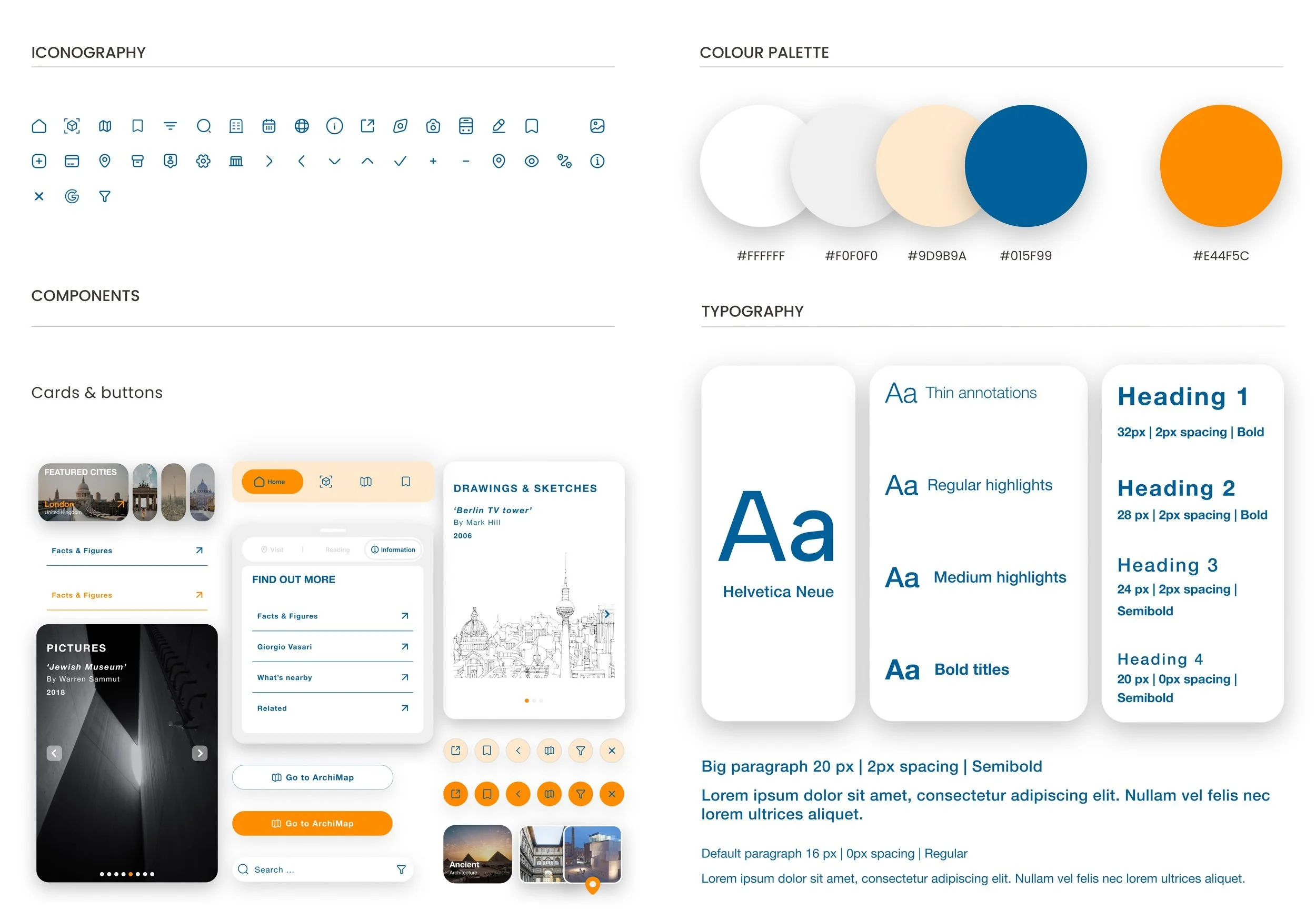 Typography: Using Helvetica Neue in the Archimaps app enhances clarity and legibility, making it ideal for navigating maps and reading architectural content. Its clean, modern aesthetic supports a minimalist interface while maintaining a professional, design-savvy tone. With strong roots in architectural history and wide device compatibility, it reinforces both usability and cultural relevance for a design-conscious audience.