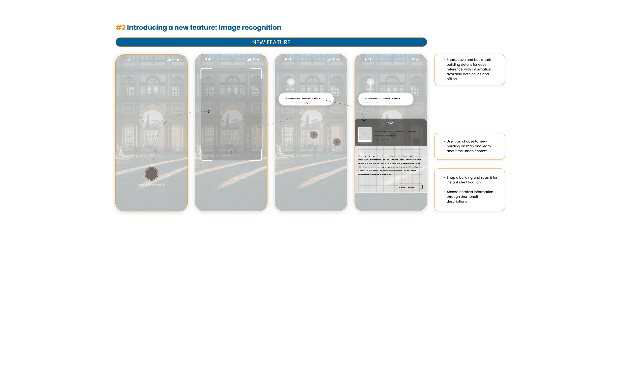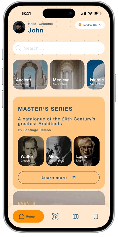 In redesigning ArchiMaps, I aim to enhance the user experience with improved interaction, flow, and UI. A key new feature is AI image recognition, enabling users to quickly identify and learn about buildings and spaces via their mobile devices.