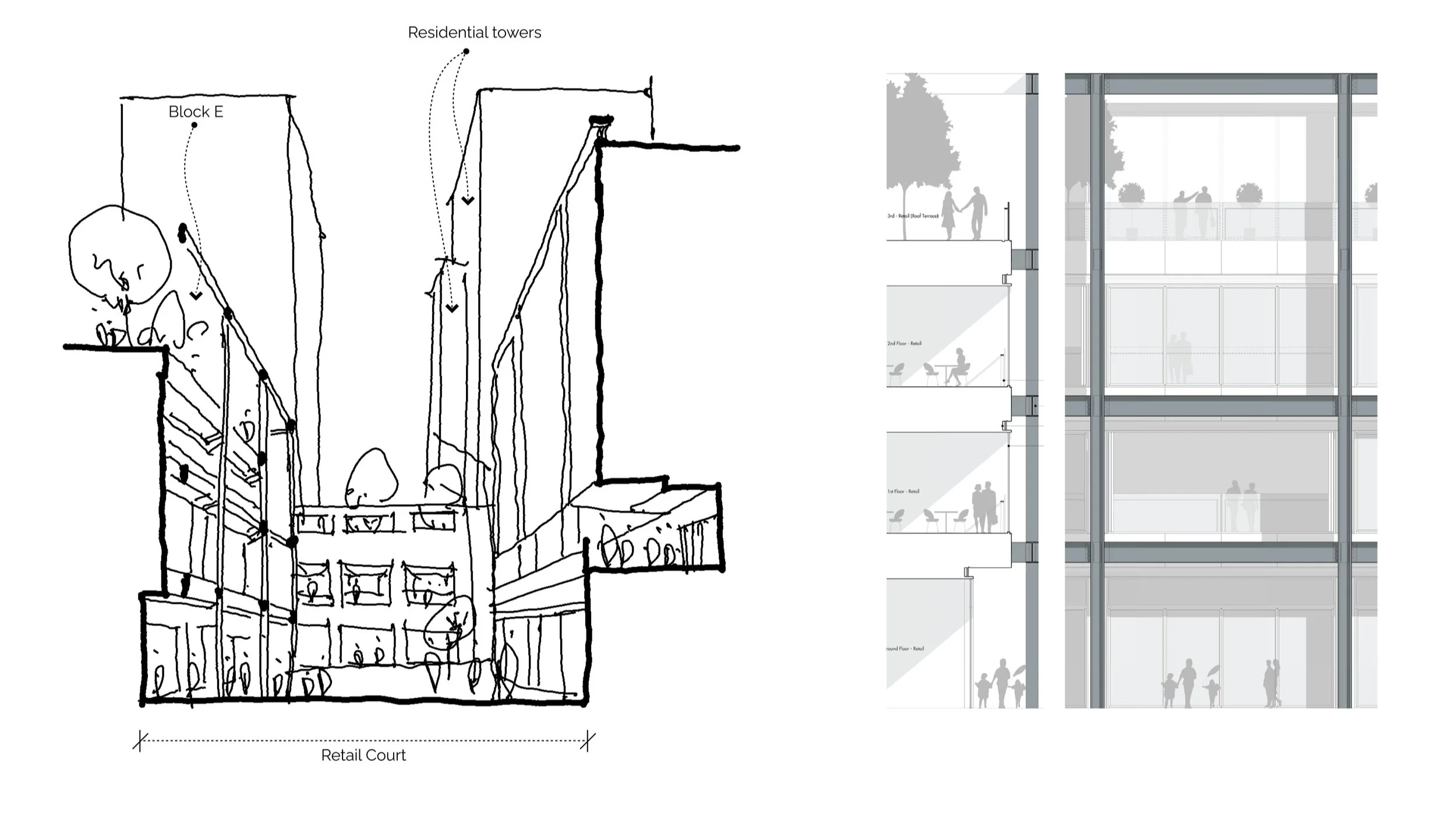I led the development and coordination of Block E, a dedicated retail unit, along with the design of the link bridges and improvements to the wider public realm.
